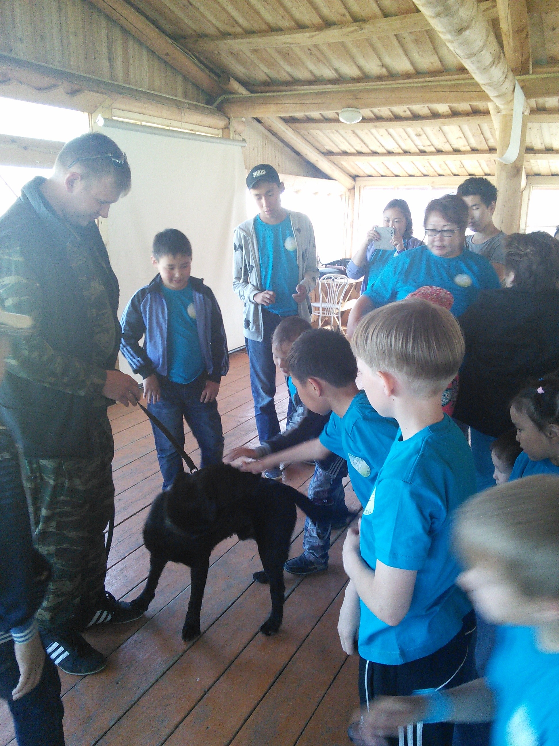 Во второй раз на встречу с детьми взяли лабрадора «Тави» с коричневым окрасом, которой 8 лет и она отличается очень спокойным нравом. С помощью «Тави» кинологи продемонстрировали поиск и обозначение спрятанного предмета, от чего дети были в восторге, рассказали об особенностях своей работы, а также снова дали юным друзьям вдоволь пообщаться, поиграть с собакой. А 18 июня на канистерапию к детям поехал лабрадор «Зима» с белым окрасом.