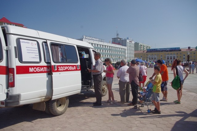 РИГ SAKHAPRESS.RU 19 июня площадь Орджоникидзе в Якутске на несколько часов превратилась в "оазис" здорового образа жизни. Малыши, подростки и их родители собрались на пятой Ярмарке здоровья. В этом году Детский (подростковый) центр и Управление молодежи и семейной политики г. Якутска провели Ярмарку здоровья для детей и подростков в рамках городской акции «Здоровый человек - здоровое будущее». В самом центре столицы республики мобильные центры здоровья Детской городской больницы, Отделения профилактики поликлиники №5, Станции скорой медицинской помощи и стоматологии провели экспресс-диагностику и оценку нарушений функционирования организма всем желающим.