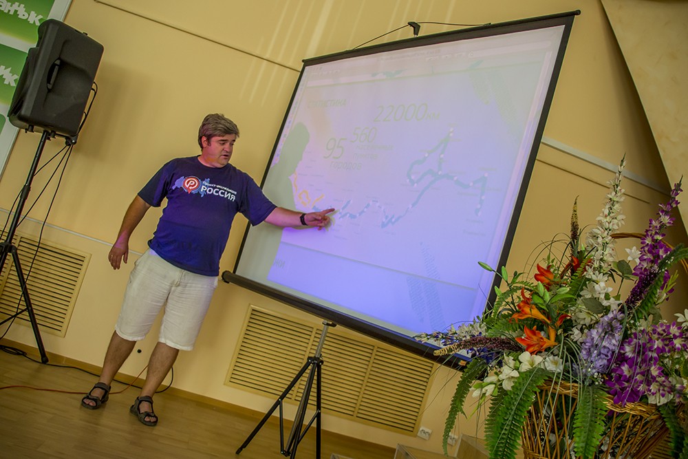 Доля подробно рассказал о ходе экспедиции, которая длится почти полтора месяца. В большинстве городов на пути следования маршрута путешественники организовывают масштабный флешмоб «Сердце города» и собирают фотогалерею «Сердец городов» для карт сервисно-поисковой платформы «Спутник». Спутник – основной спонсор и партнер автопробега – является одним из проектов компании «Ростелеком». В Якутске флешмоб «сердце города» состоится 19 июля в 11:00 на площади Дружбы народов перед Театром оперы и балета. Сердце, собранное жителями столицы будет сфотографировано с вертолета-квадрокоптера. По итогам акции город, в котором будет самое «многочисленное» сердце получит в подарок от «Ростелекома» открытую точку Wi-Fi доступа в центре города. Пока рекордсменом является город Улан-Удэ, где удалось собрать «сердце» из 266 человек. - Сердце города – это его жители. По итогам акций «сердце города», которые мы проводим во всех городах, будет организована выставка, в которую войдут все сфотографированные нами сердца. Якутск имеет все шансы войти в книгу рекордов Гиннеса, как город в котором было построено самое большое сердце, при условии что завтра на площади Дружбы в 11 утра соберется более чем 266 человек, - отметил капитан экспедиции Сергей Доля. Департамент по связям с общественностью, взаимодействию со СМИ, внешним и межрегиональным связям ОА