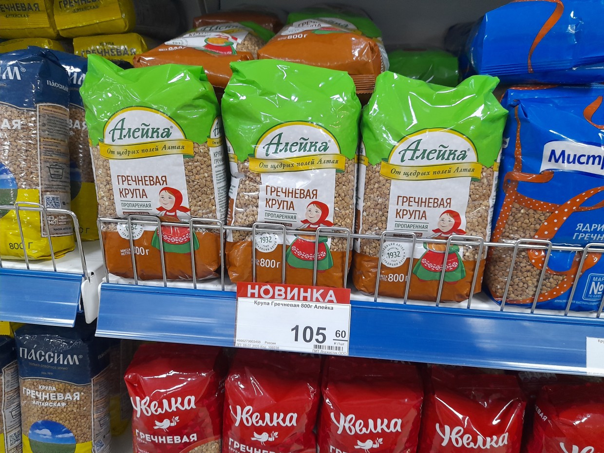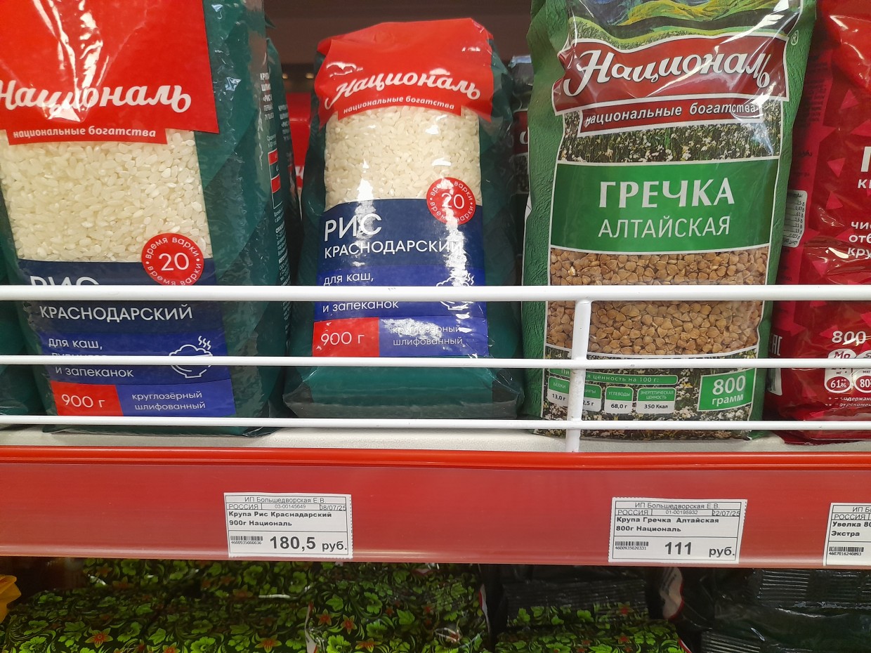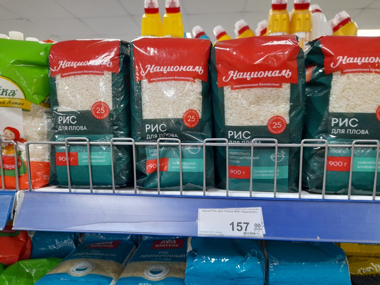 Отметим, что популярная говядины тушеной (ГОСТ «Бурятмяспром») стоит здесь 269 рублей. Пачка чая из 25 пакетиков «Принцесса Нури» по 80 рублей, десяток яиц «Алтайский край» по 115 рублей, молоко «Молочный дождик» (2,5%) по 156 рублей, мука «Макфа» (1 кг) по 97 рублей, макароны «Макфа» по 108 рублей, а также батон «Мультисид» (136 рублей) и хлеб «Дарницкий» по 50 рублей.
