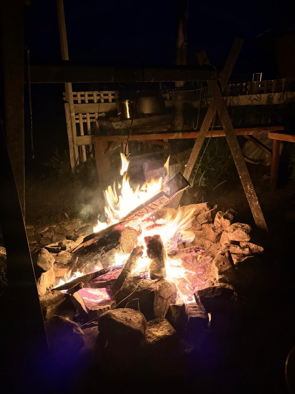 В уютной костровой зоне нашу усталость сняло как рукой, и мы душевно просидели с другими гостями, с которыми тут же завязались хорошие отношения, до четырех утра.