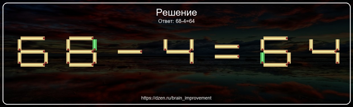 Сегодня вам предстоит решить головоломку №2. Условие задачи - необходимо переместить две спички, чтобы получить правильное решение. Также ниже будут опубликованы подсказка и решение головоломки.