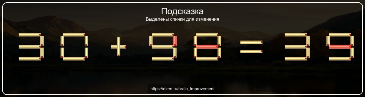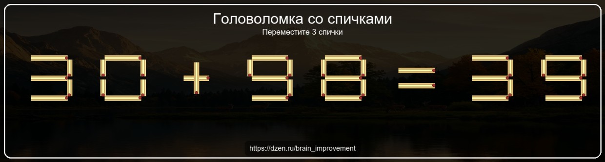 Сегодня вам предстоит решить головоломку №3. Условие задачи - необходимо переместить три спички, чтобы получить правильное решение. Также ниже будут опубликованы подсказка и решение головоломки.