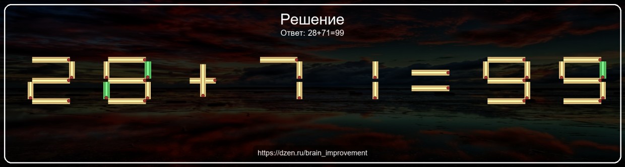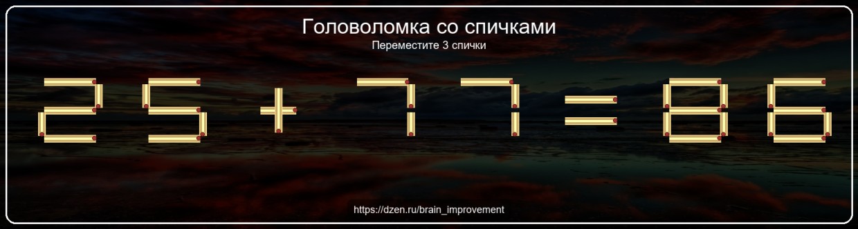 Сегодня вам предстоит решить головоломку №4. Условие задачи - необходимо переместить три спички, чтобы получить правильное решение. Также ниже будут опубликованы подсказка и решение головоломки.