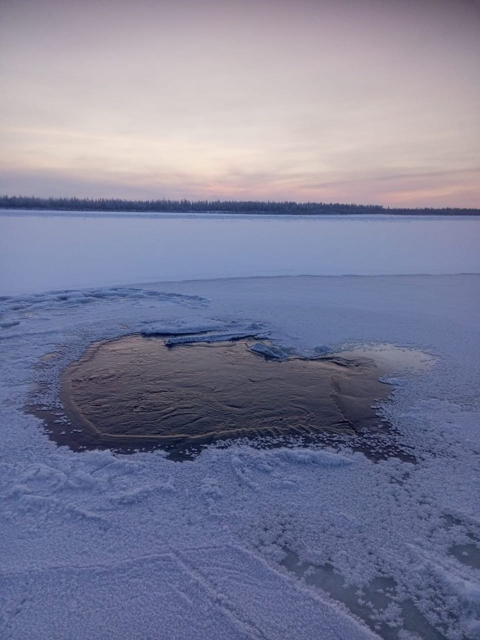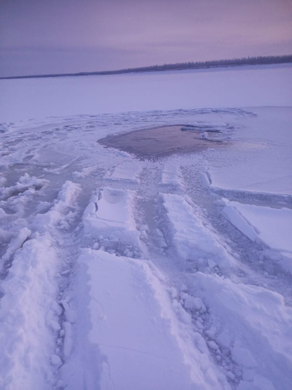 В якутских соцсетях опубликовали фотографии с места провала под лед на реке Алдан.