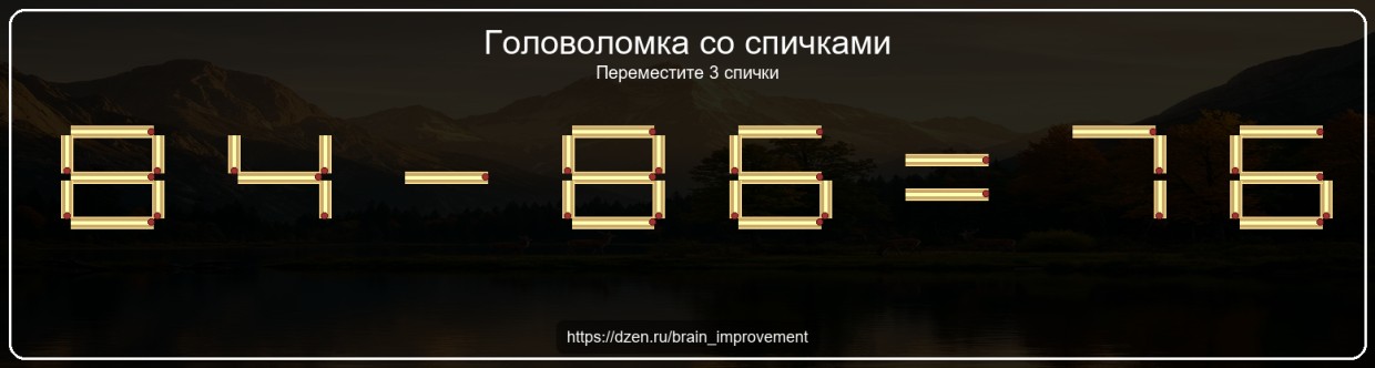 Вам наверняка придется поломать голову, чтобы решить эту сложную задачу. Чтобы получить правильный ответ, необходимо будет переложить три спички. Скажем сразу, сделать это будет непросто.