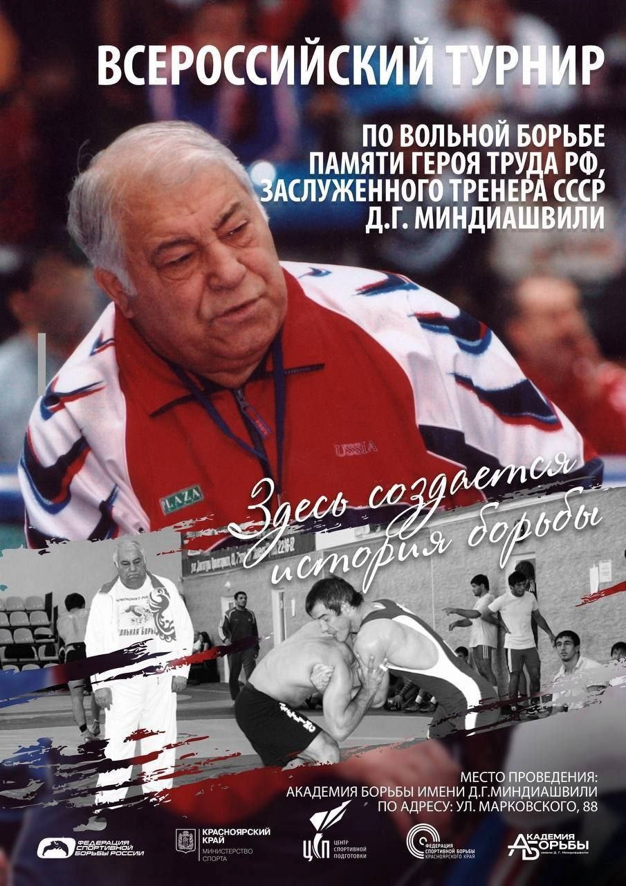 С 19 по 21 декабря в Академии борьбы имени Д.Г. Миндиашвили Красноярска пройдет Всероссийский турнир по вольной борьбе, посвященный памяти Героя труда РФ, заслуженного тренера России, Грузии и СССР Дмитрия Георгиевича Миндиашвили. В соревнованиях, где соберутся около 200 спортсменов из различных регионов страны, будут разыгрываться именные путевки на 37 Международные соревнования «Кубок Ивана Ярыгина», который пройдет с 28 января по 2 февраля будущего года в городе на Енисее.