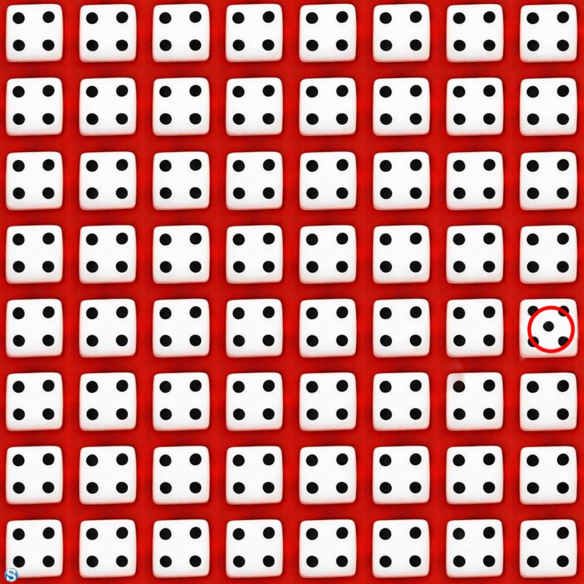 Перед вами множество игральных костей, которые кажутся одинаковыми на первый взгляд. Но это не так! Среди них спряталась одна отличающаяся деталь. Ваша задача — найти её всего за 5 секунд.