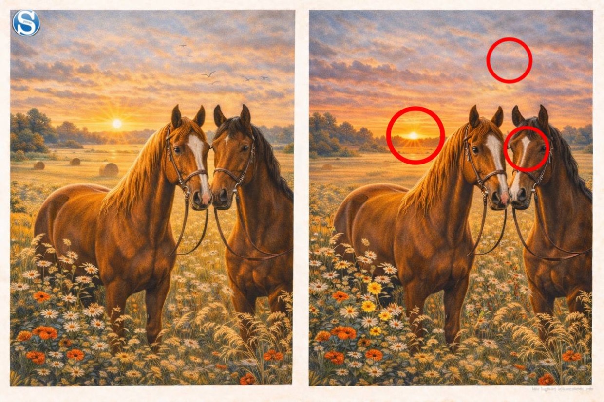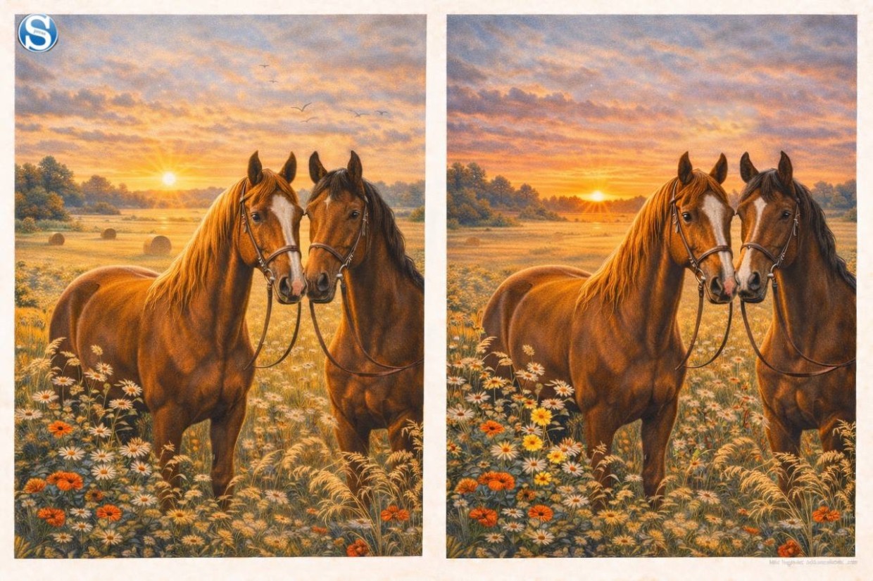 Найдите три отличия за 5 секунд: лошадки на лугу