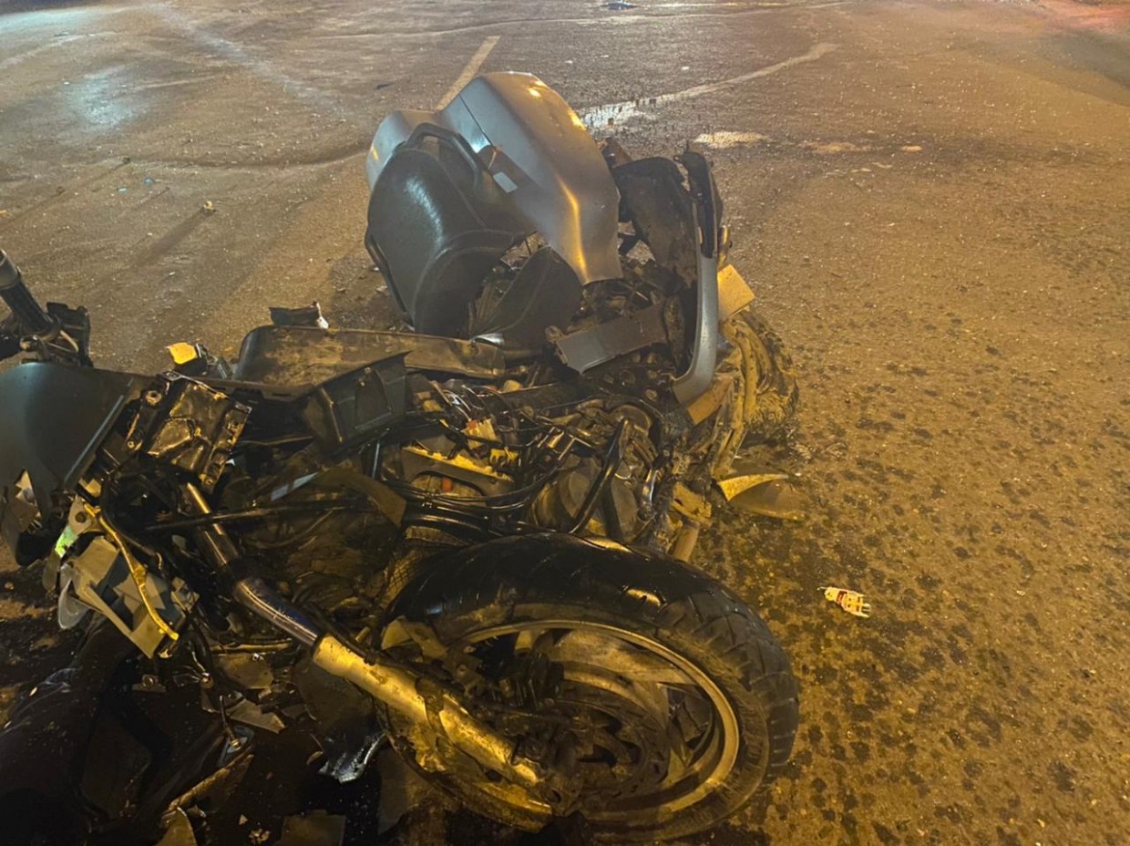 В момент автоаварии мотоциклист и его пассажир находились в мотошлемах.