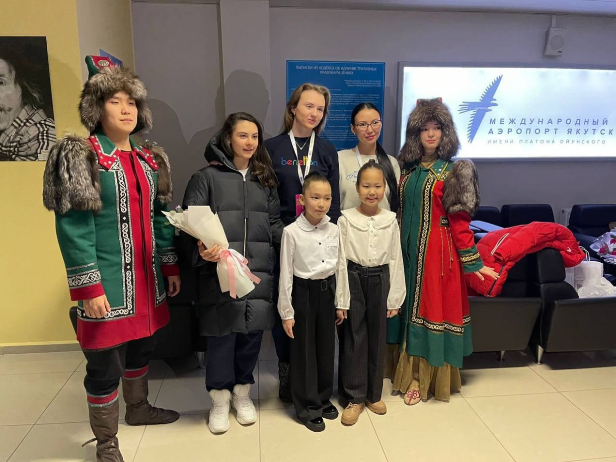 Сегодня рано утром в якутском аэропорту встречали гимнасток Лалу Крамаренко и Ксению Дудкину, а также замечательную фигуристку Камилу Валиеву.